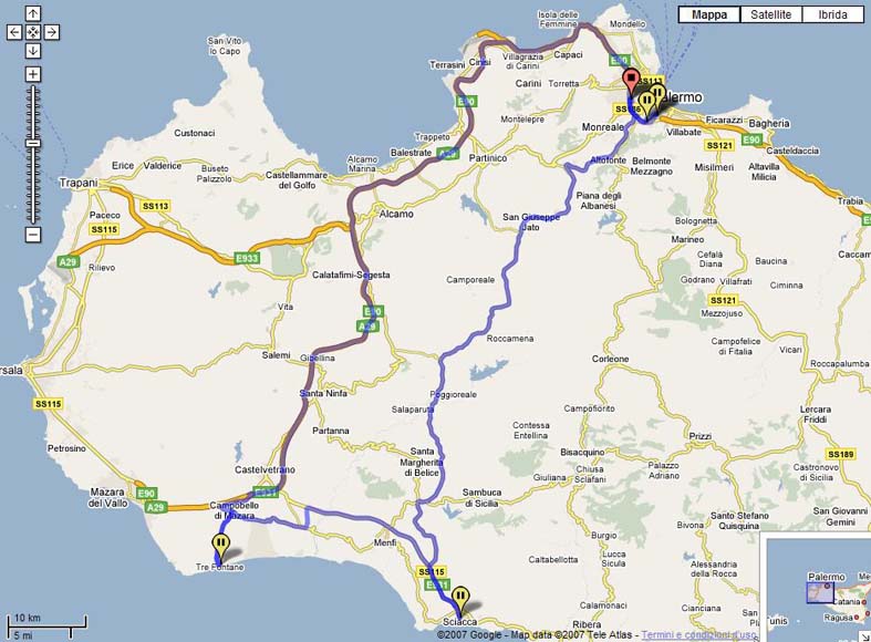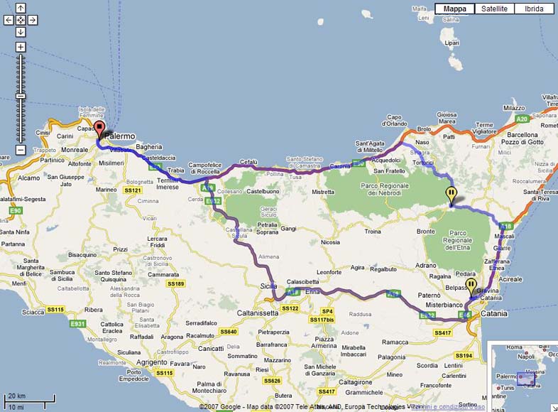 Mappa Google - Weekend sicilianoCome già sapete, lo scorso weekend avevo percorso quasi 600km, ma non contento, per ferragosto (tra martedì e mercoledì dunque) ne ho percorsi altri 290.